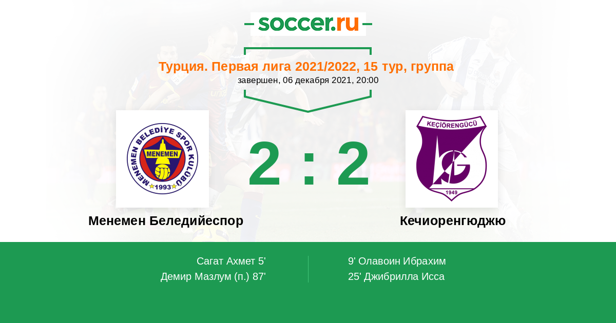 Протокол матча Менемен Беледийеспор против Кечиоренгюджю