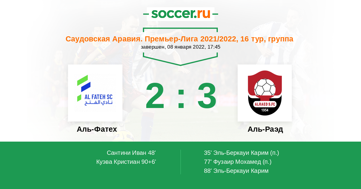 Протокол матча Аль-Фатех против Аль-Раэд