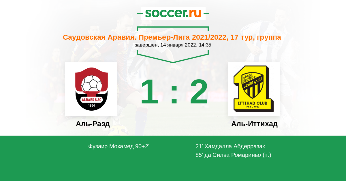 Протокол матча Аль-Раэд против Аль-Иттихад