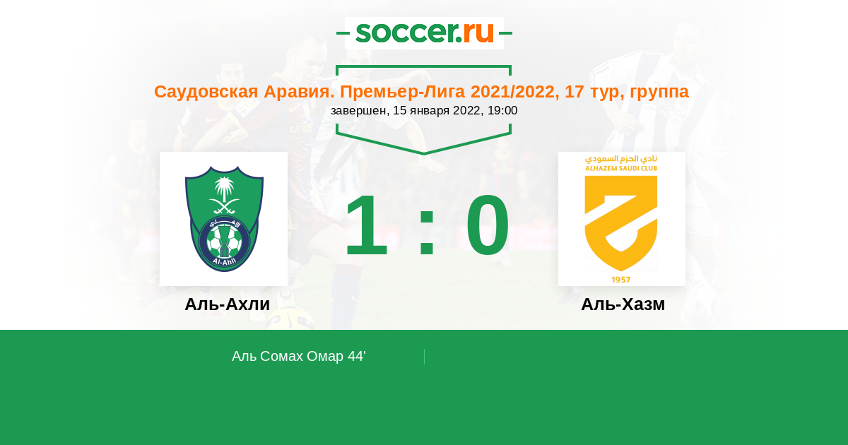 44' (1:0) Аль Сомах Омар (9) (Алиоски Эзган (7))