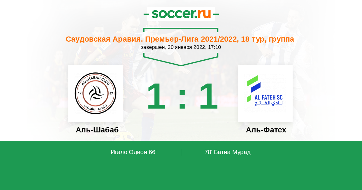 Протокол матча Аль-Шабаб против Аль-Фатех