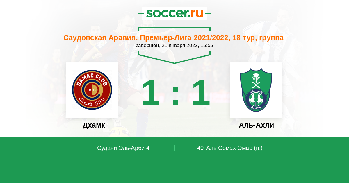 Протокол матча Дамак против Аль-Ахли