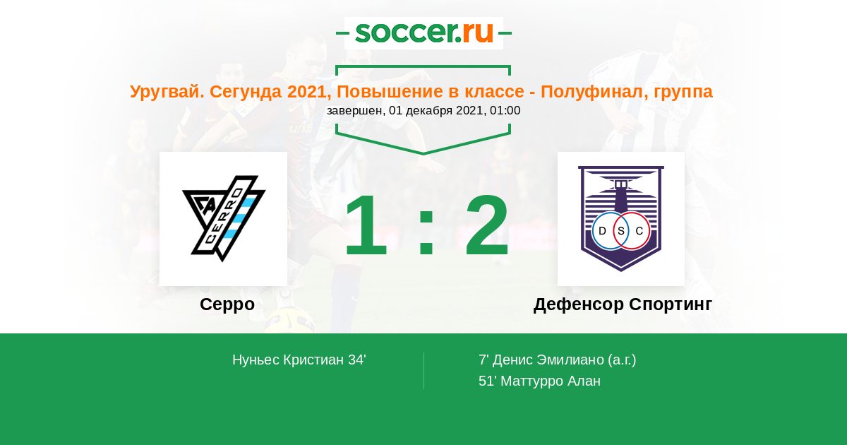 Протокол матча Серро против Дефенсор Спортинг