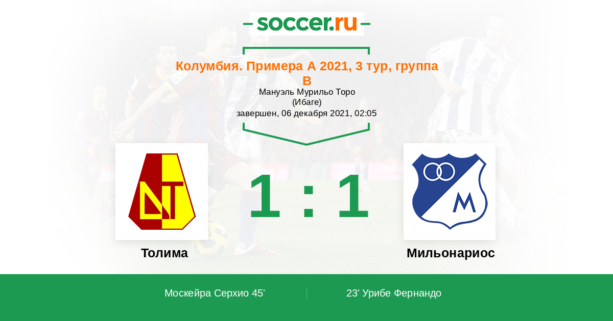 45' (1:1) Москейра Серхио (16) (Риос Хуан (14))