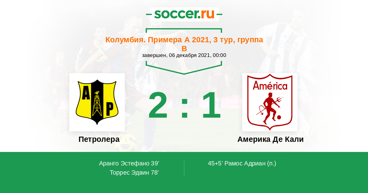 Протокол матча Петролера против Америка Де Кали