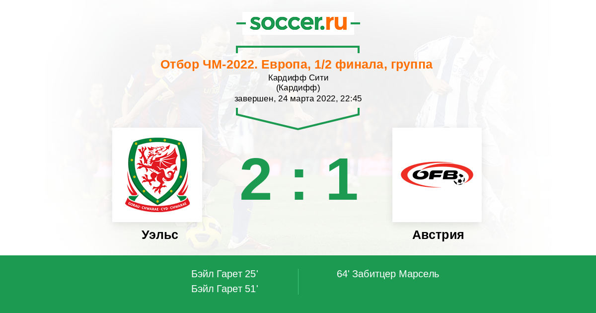 Протокол матча Уэльс против Австрия