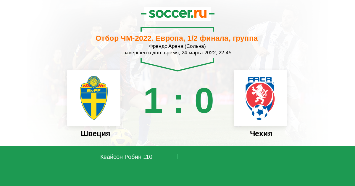 Протокол матча Швеция против Чехия