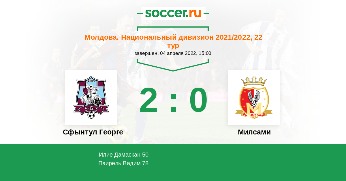 Протокол матча Сфынтул Георге против Милсами