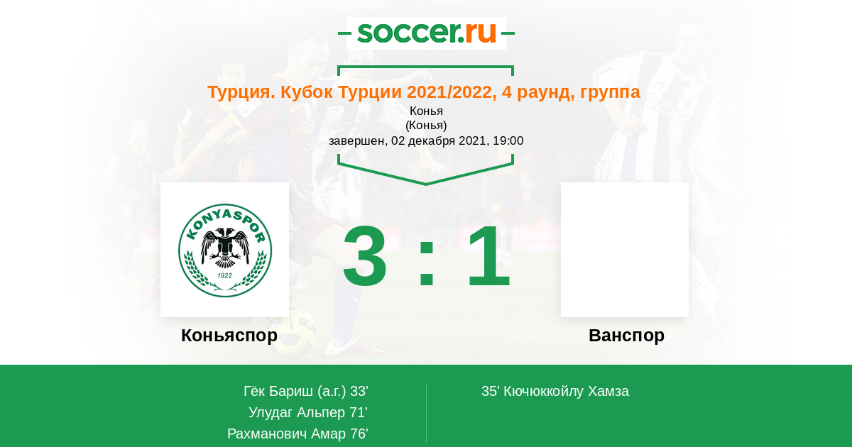 Протокол матча Коньяспор против Ван Спор