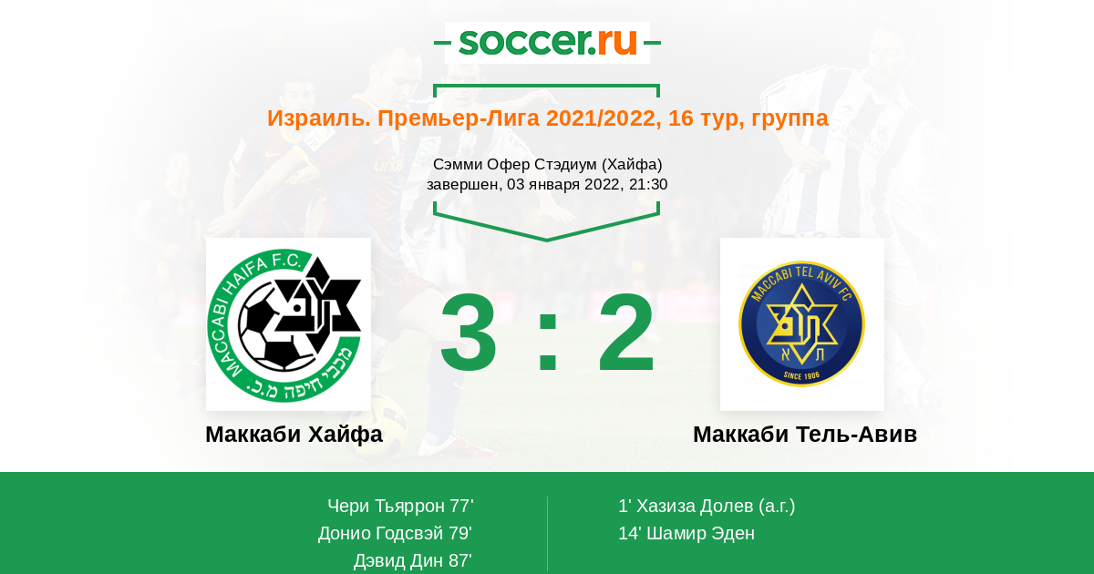 Протокол матча Маккаби Хайфа против Маккаби Тель-Авив