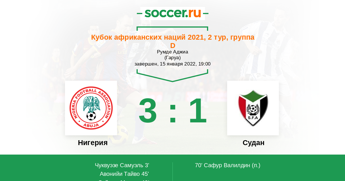 3' (1:0) Чуквуэзе Самуэль (17) (Саймон Моузес (15))