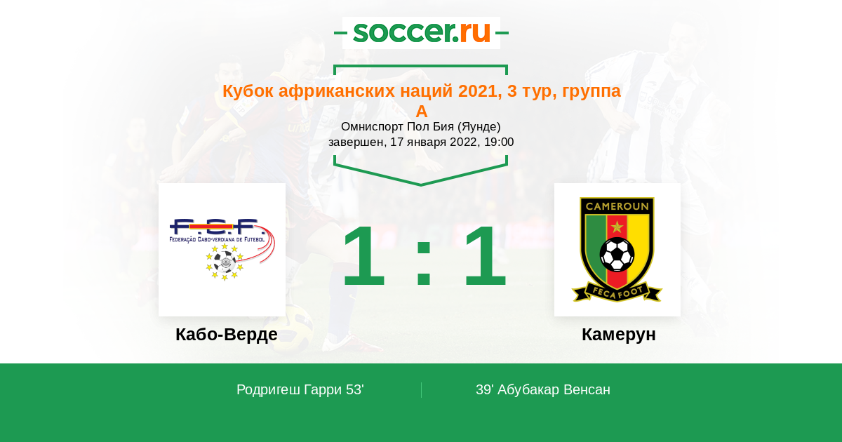 53' (1:1) Родригеш Гарри (11) (Роча Сантос Кенни (18))