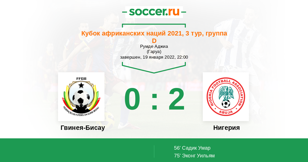 56' (0:1) Садик Умар (24) (Ихеаначо Келечи (14))