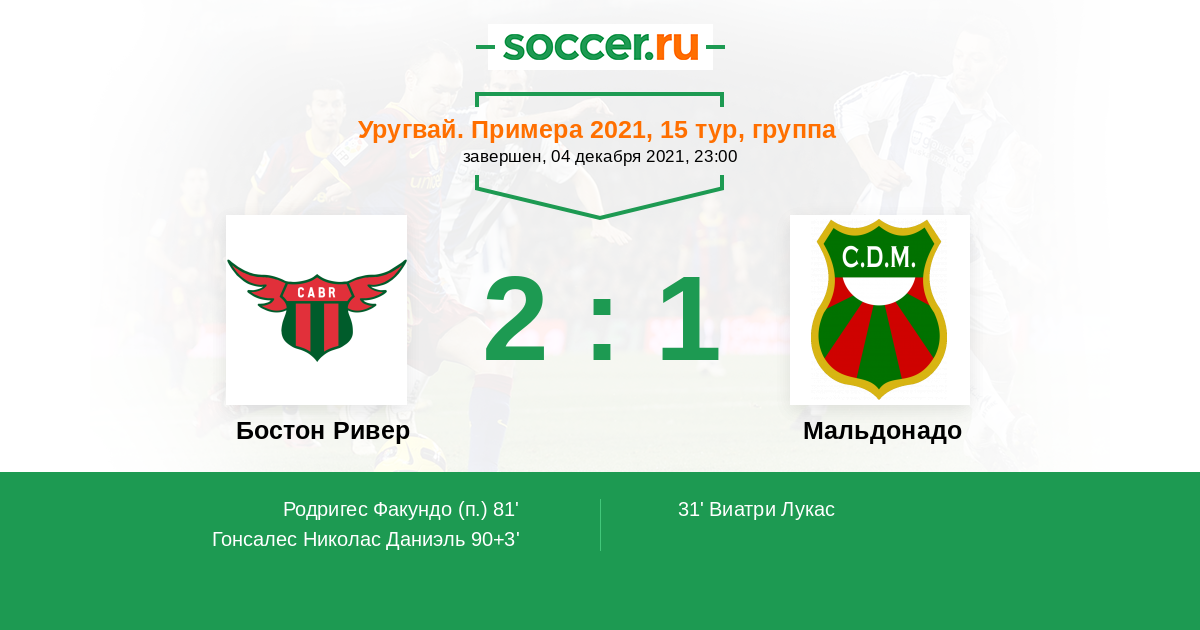 Протокол матча Бостон Ривер против Мальдонадо