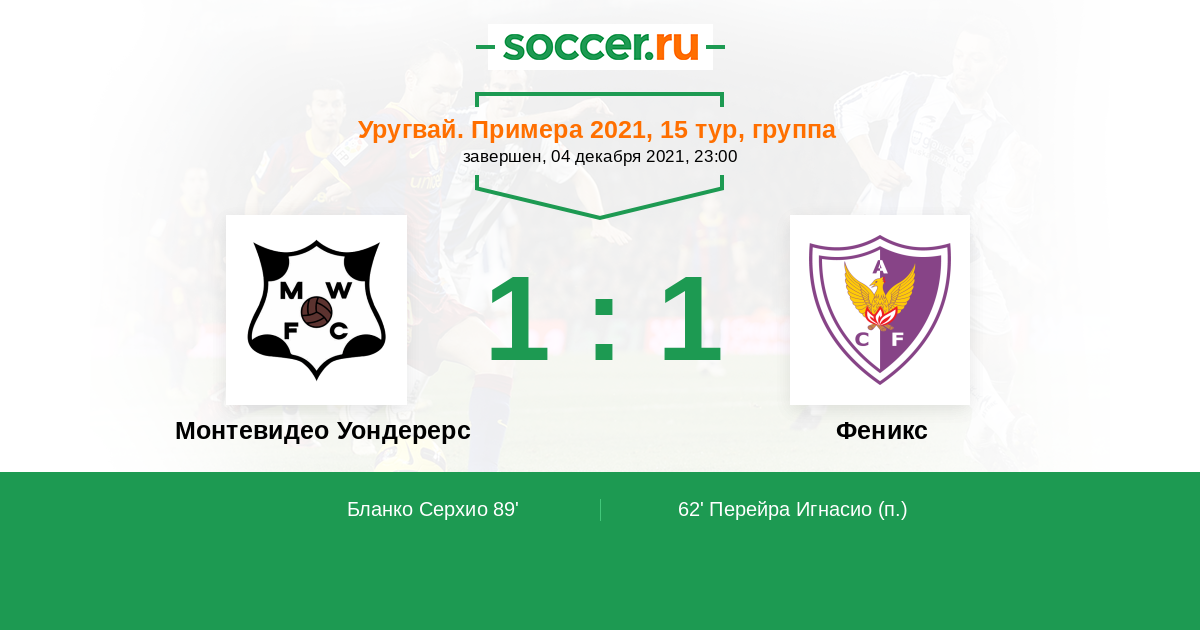 Протокол матча Монтевидео Уондерерс против Феникс