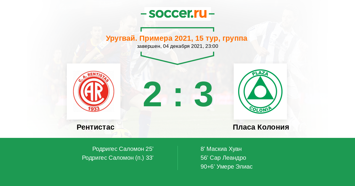 Протокол матча Рентистас против Пласа Колония