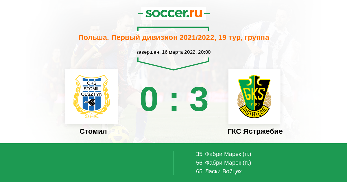 Протокол матча Стомил против ГКС Ястржебие