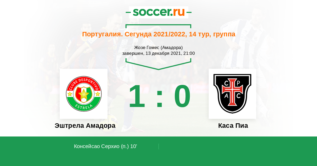Протокол матча Эштрела Амадора против Каса Пиа