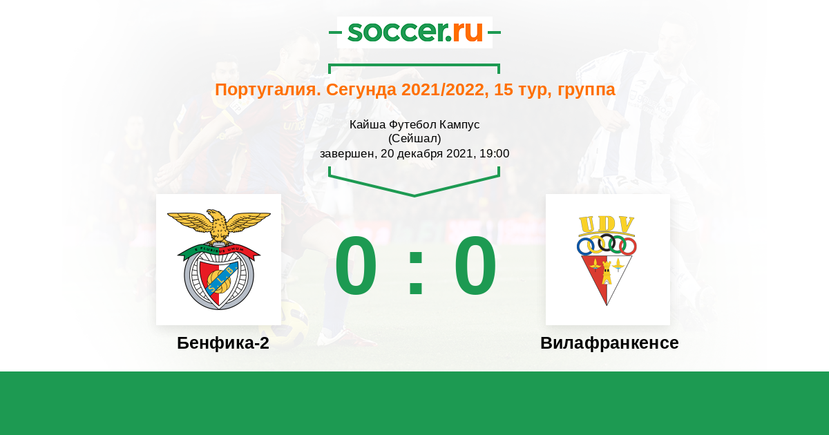 Протокол матча Бенфика-2 против Вилафранкенсе