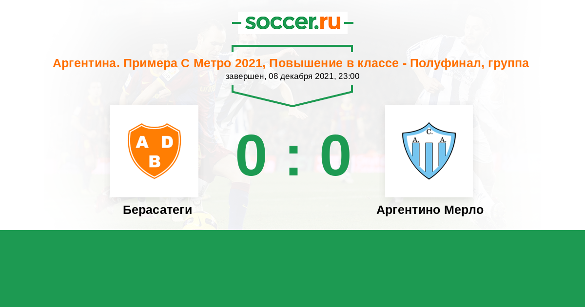Аргентина. Примера С Метро 04.12.2021 Аргентино Мерло Логотип футбольный клуб Аргентино Мерло 1:0 Логотип футбольный клуб Берасатеги (Буэнос-Айрес) Берасатеги