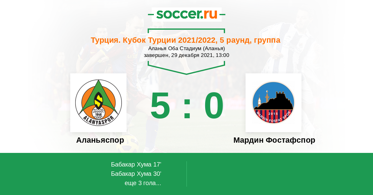 Протокол матча Аланьяспор против Мардин Фостафспор