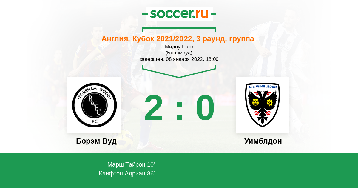Протокол матча Борэм Вуд против Уимблдон
