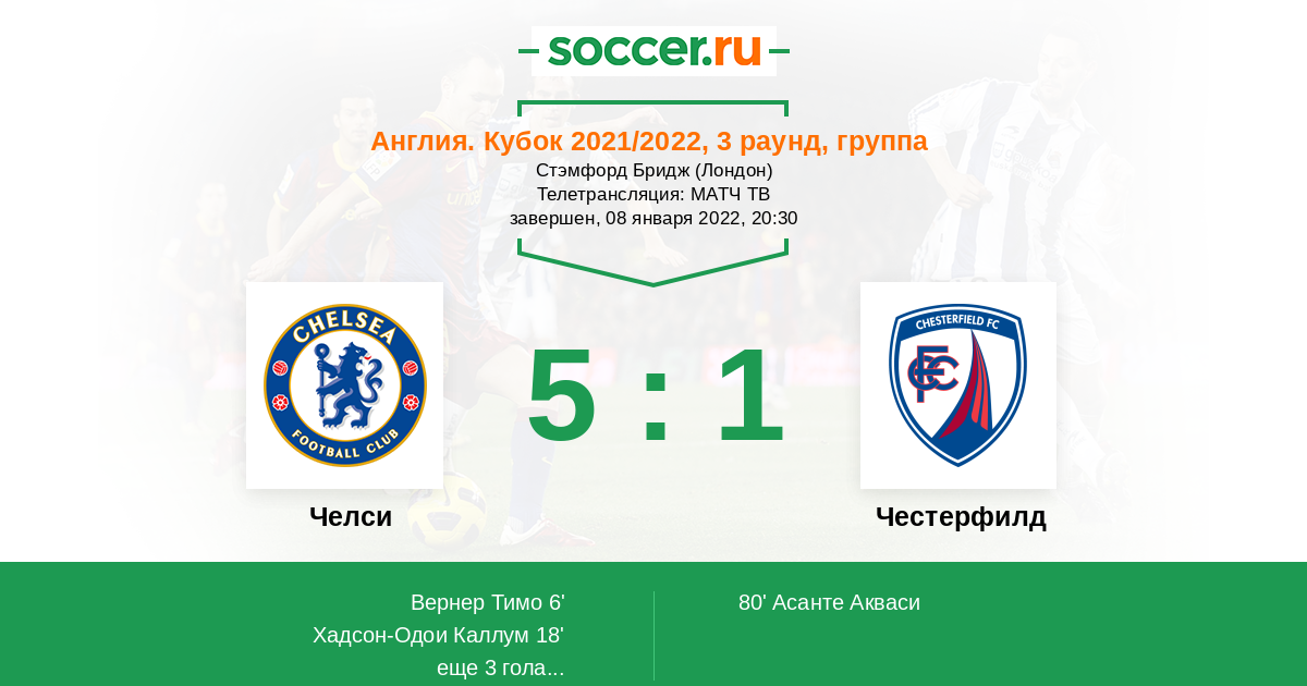 Как показывает практика, "пенсионеры" любят устраивать разгромы скромным противникам на первых этапах кубковых соревнований в родных стенах. В особенности, если речь идет о представителях четвертого или пятого дивизиона, как в нашем случае. "Честеру" присущи "низовые матчи": сразу пять из предыдущих шести игр принесли не более двух забитых мячей, а в четырех матчах одна из сторон не забивала. На "Стэмфорд Бридж" первый вариант развития событий увидим едва ли , а вот второй вполне возможен. "Пенсионеры" играют на своем поле против коллектива, который не входит в систему профессионального футбола Англии, и в любом сочетании футболистов на поле добьются разгрома соперника.