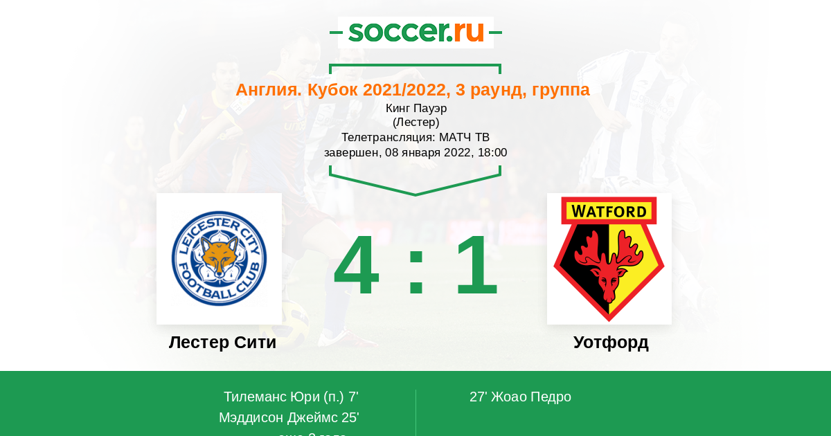 Но во главе «Уотфорда» — Раньери. Человек, оказавший на судьбу «Лестера» самое сильное влияние. Так что возможно всё. Плюс на составы команд оказывает влияние эпидемия. Но если нужно сделать ставку, поставлю на проход «Лестера» в следующий раунд в основное время. «Уотфорд» всё-таки не «Ливерпуль». А Роджерс должен был сделать выводы из прежних ошибок»,