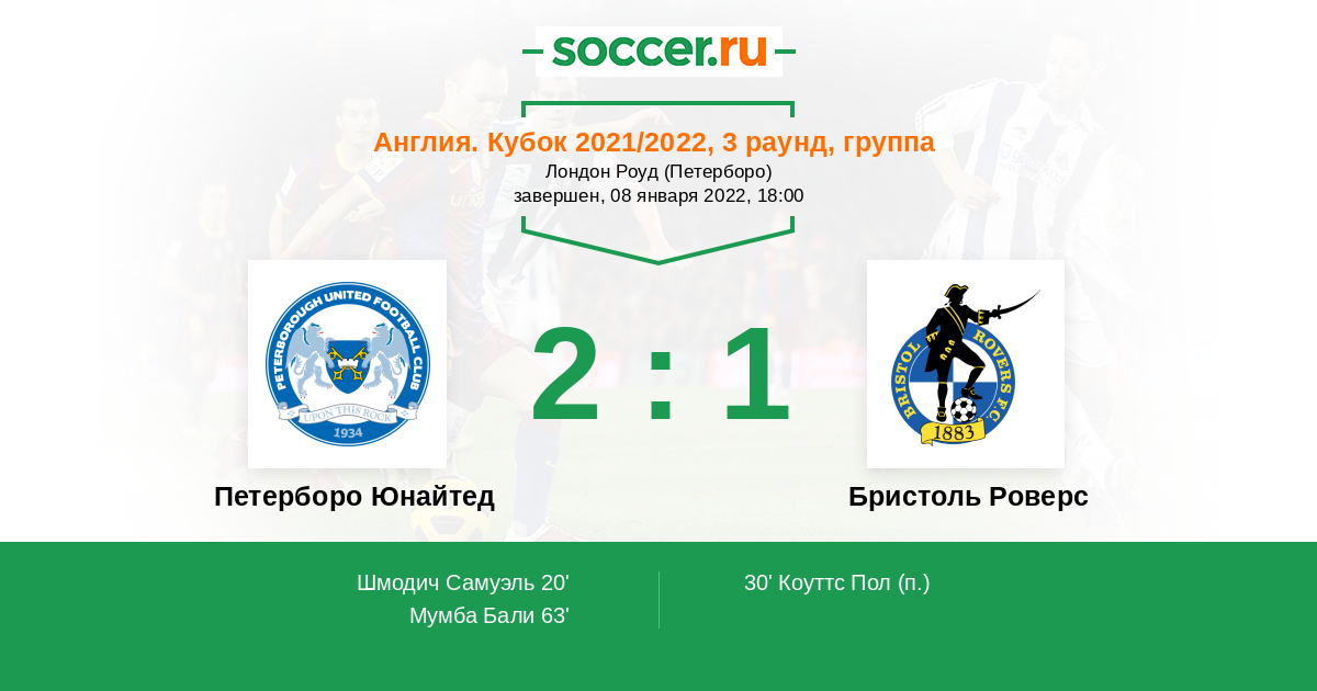 Протокол матча Петерборо Юнайтед против Бристоль Роверс