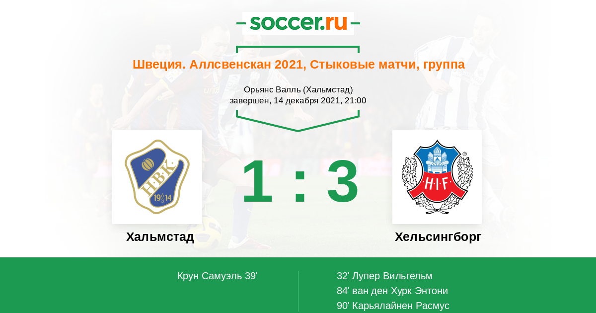 39' (1:1) Крун Самуэль (11) (Антонссон Маркус (9))