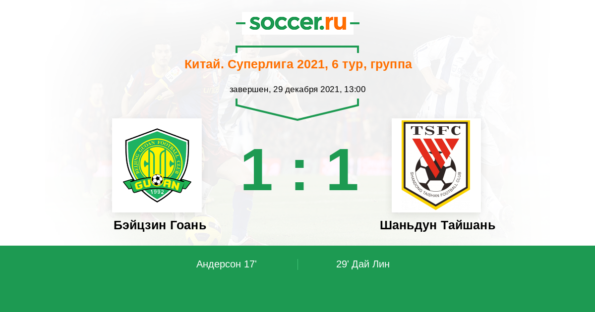 29' (1:1) Дай Лин (35) (Дельгаду Педру (19))