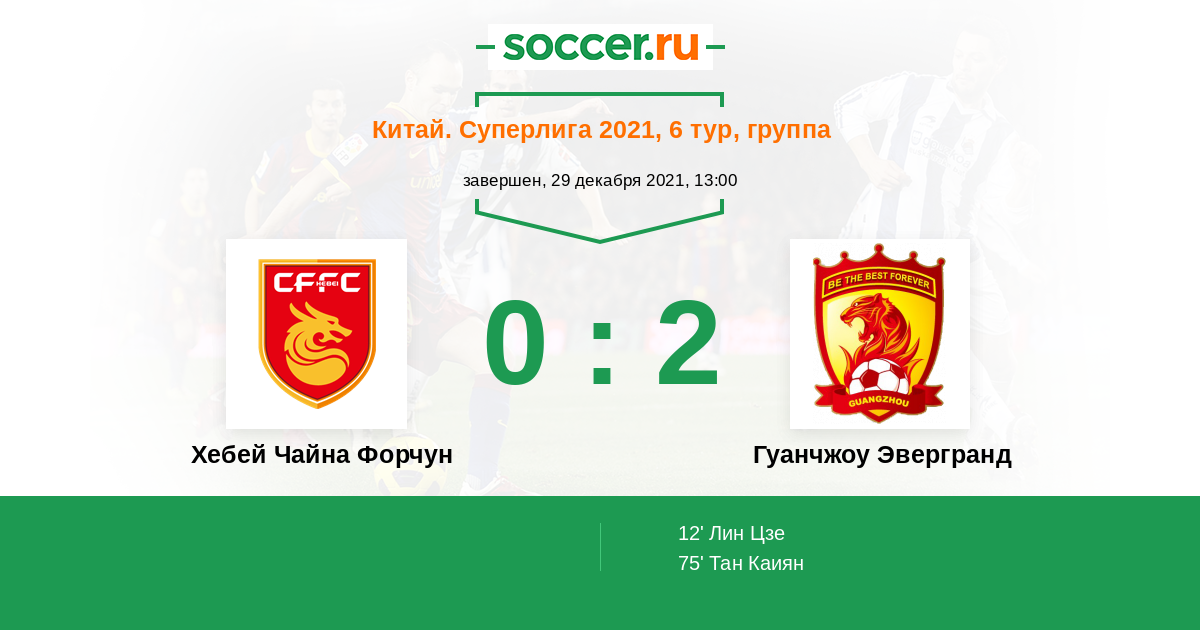 Протокол матча Хебей Чайна Форчун против Гуанчжоу Эвергранд