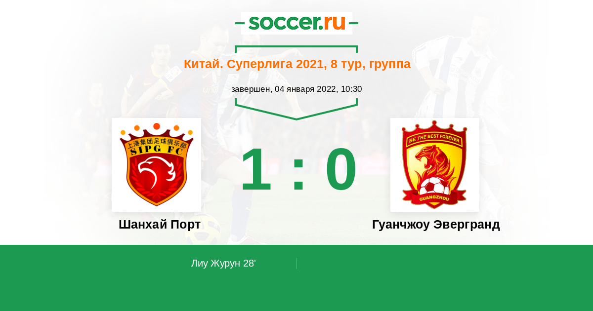 Протокол матча Шанхай Порт против Гуанчжоу Эвергранд