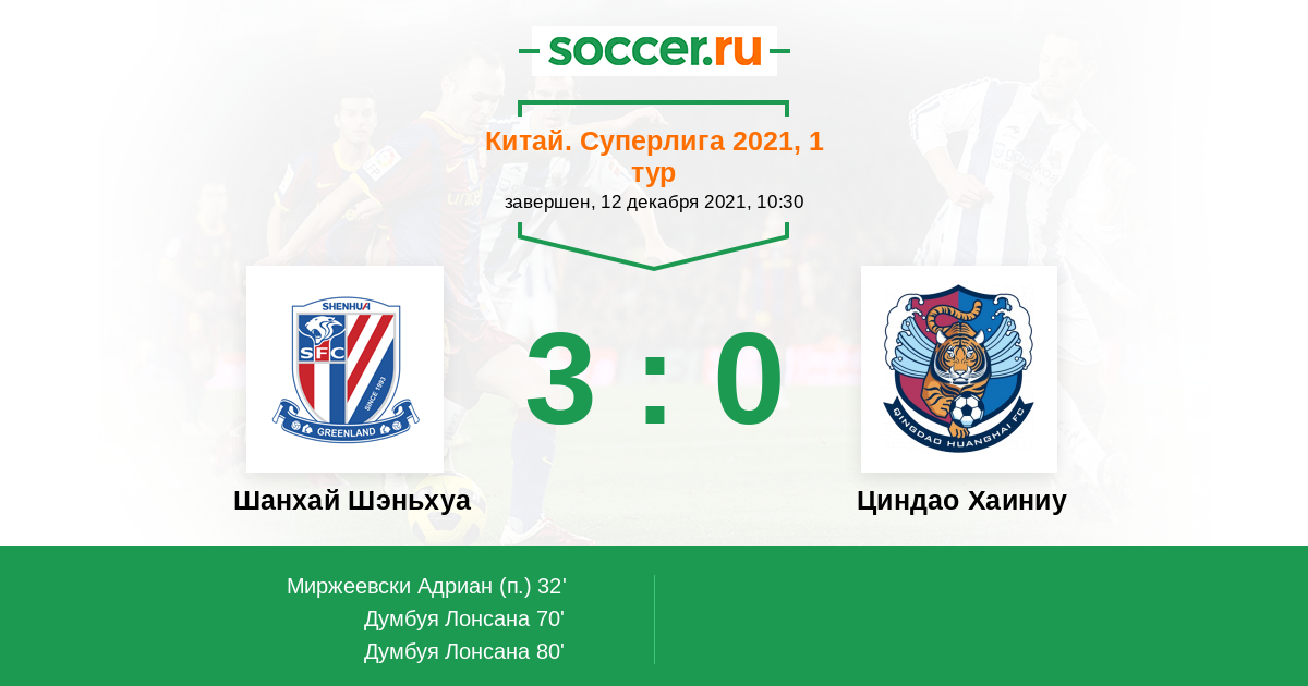 Протокол матча Шанхай Шэньхуа против Циндао Хаиниу