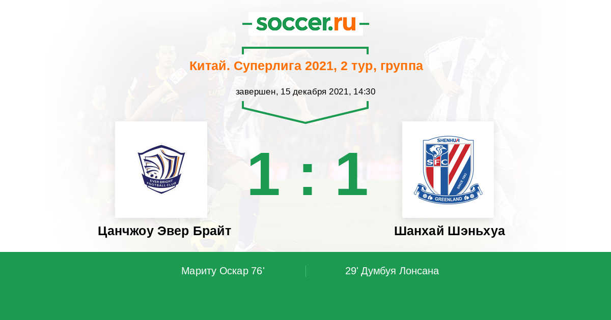 Протокол матча Цанчжоу Эвер Брайт против Шанхай Шэньхуа