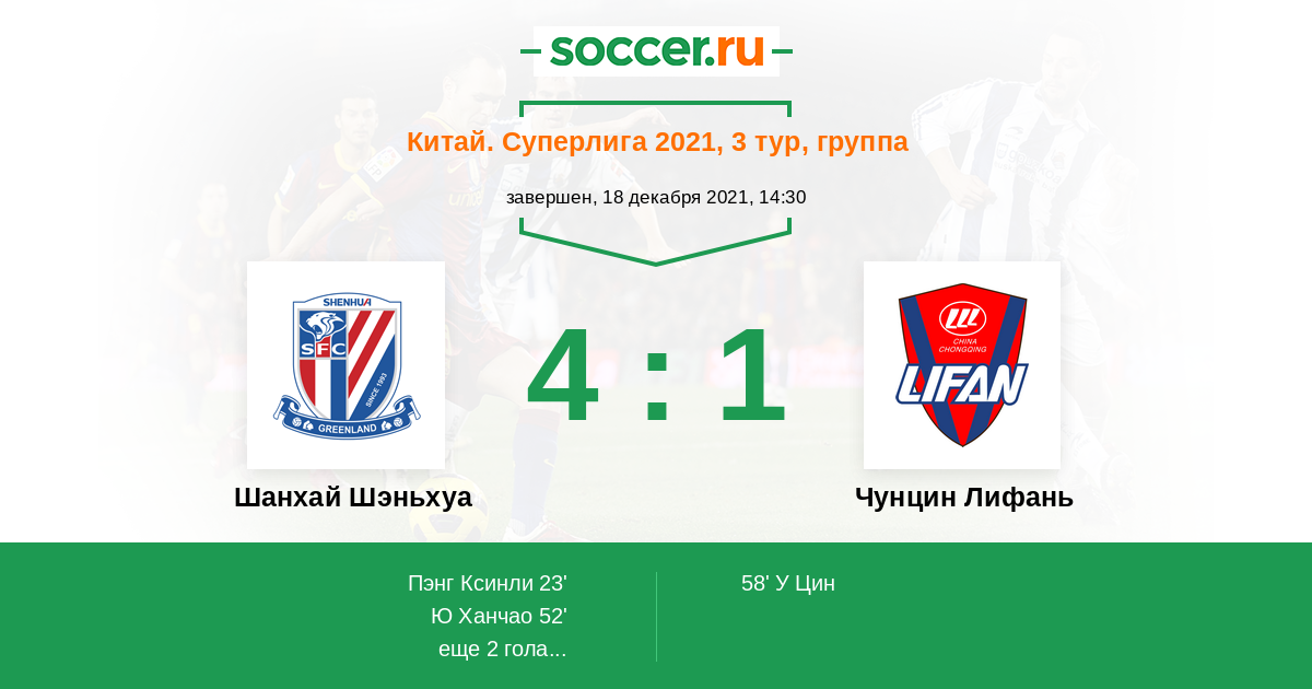 Протокол матча Шанхай Шэньхуа против Чунцин Лифань