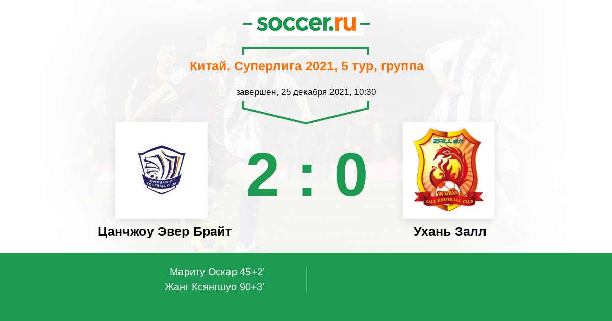 Протокол матча Цанчжоу Эвер Брайт против Ухань Залл