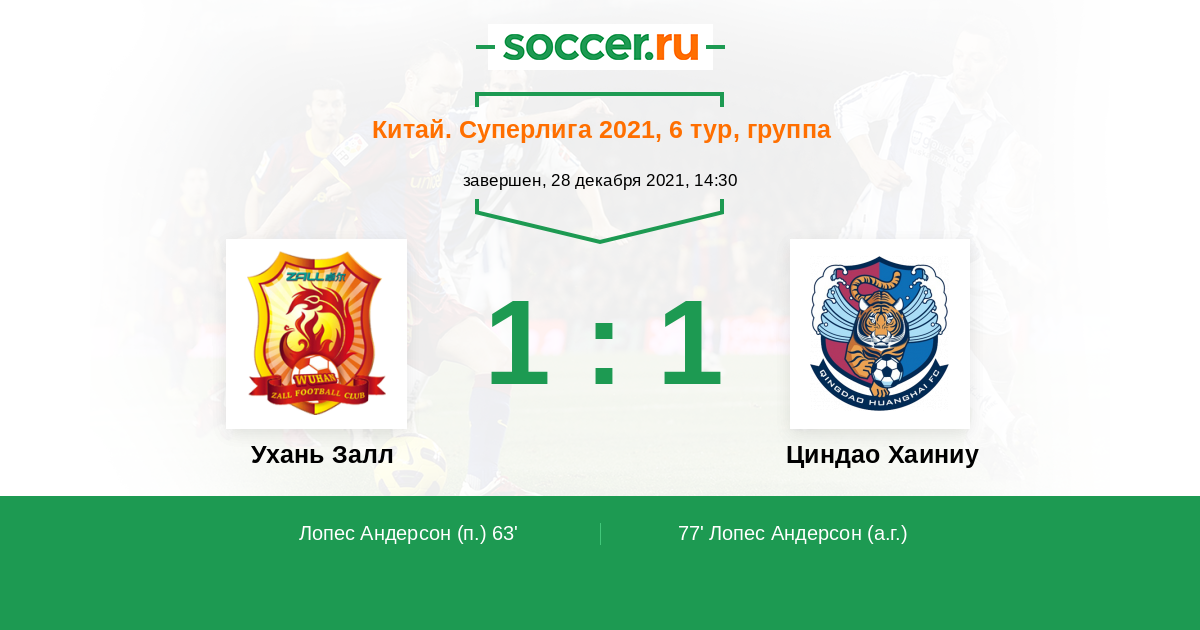 Протокол матча Ухань Залл против Циндао Хаиниу