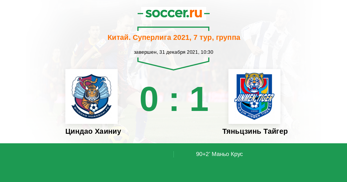 Протокол матча Циндао Хаиниу против Тяньцзинь Тайгер