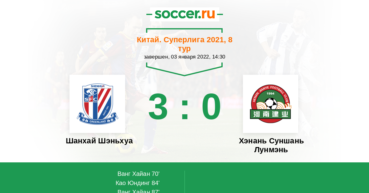 Протокол матча Шанхай Шэньхуа против Хэнань Суншань Лунмэнь