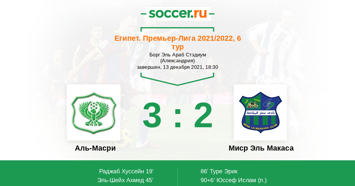 Протокол матча Аль-Масри против Миср Эль Макаса