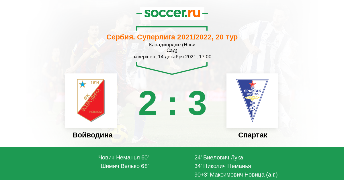 Протокол матча Войводина против Спартак Суботица