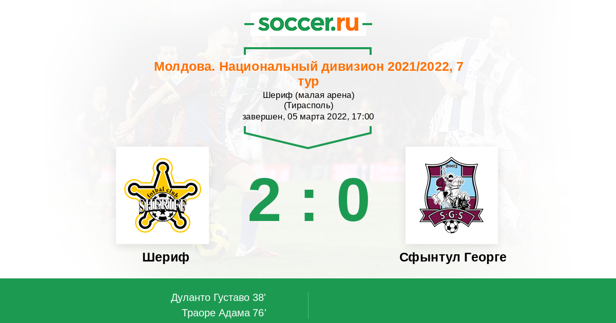 Протокол матча Шериф против Сфынтул Георге