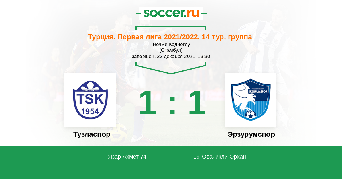 Протокол матча Тузласпор против Эрзурумспор