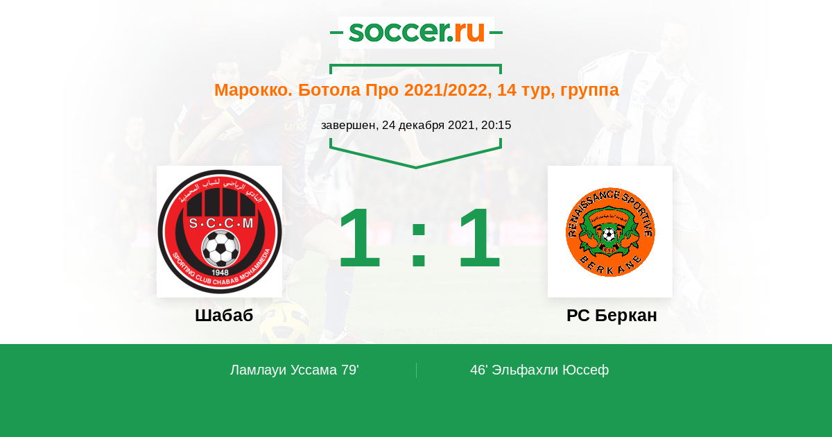 Протокол матча Шабаб против РС Беркан