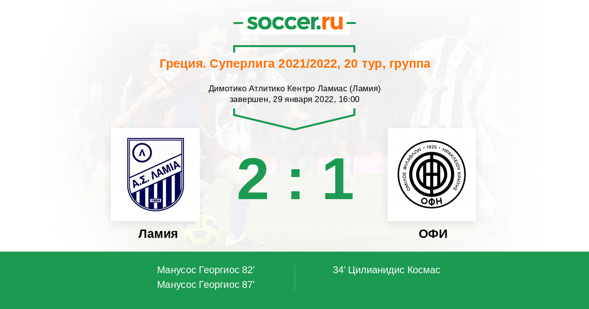 В этом матче я отдаю предпочтение команде гостей. ОФИ располагается в таблице выше Ламии и по всем показателям превосходит соперника. В личных встречах тоже преимущество у ОФИ, выигравшего 4 из 5-ти последних матчей против Ламии.