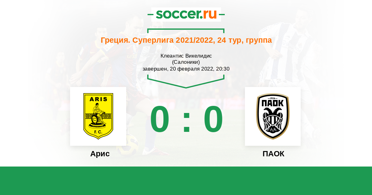 Протокол матча Арис против ПАОК