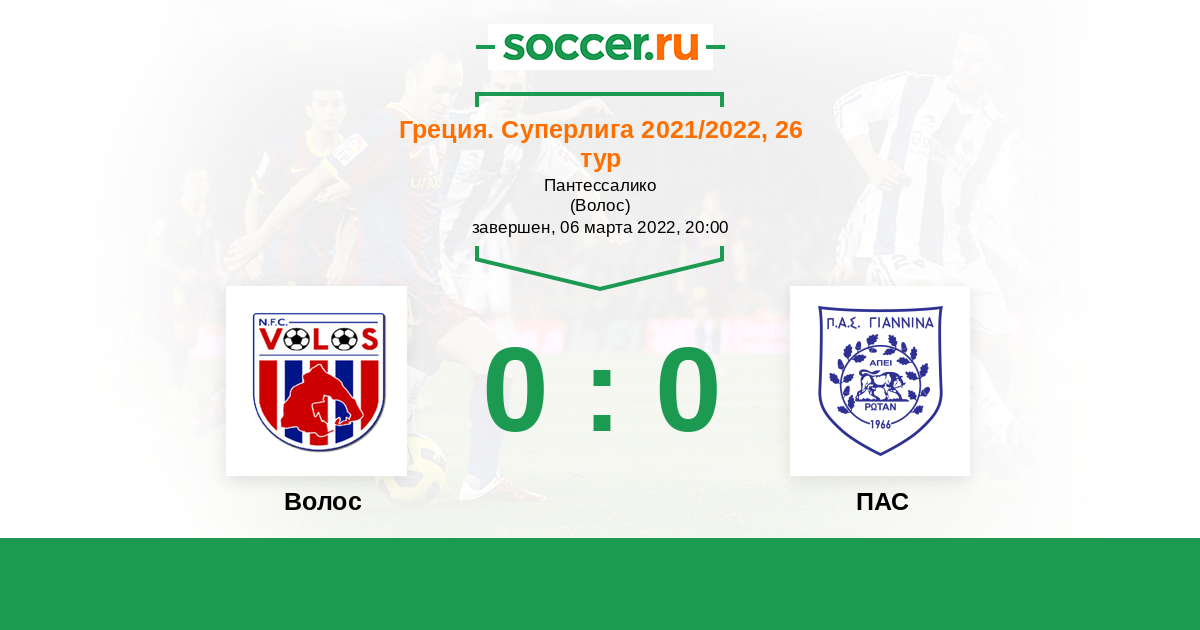 Протокол матча Волос против ПАС
