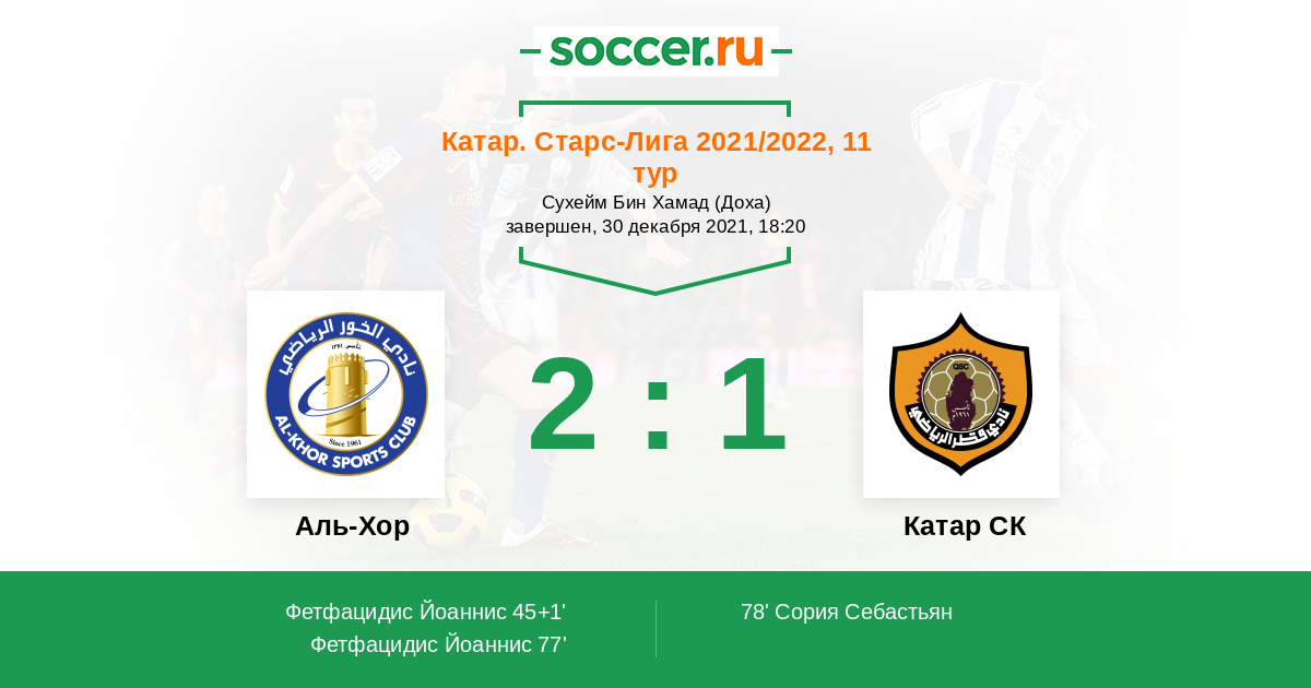 77' (2:0) Фетфацидис Йоаннис (10) (Исмаил Эль-Хаддад (11))