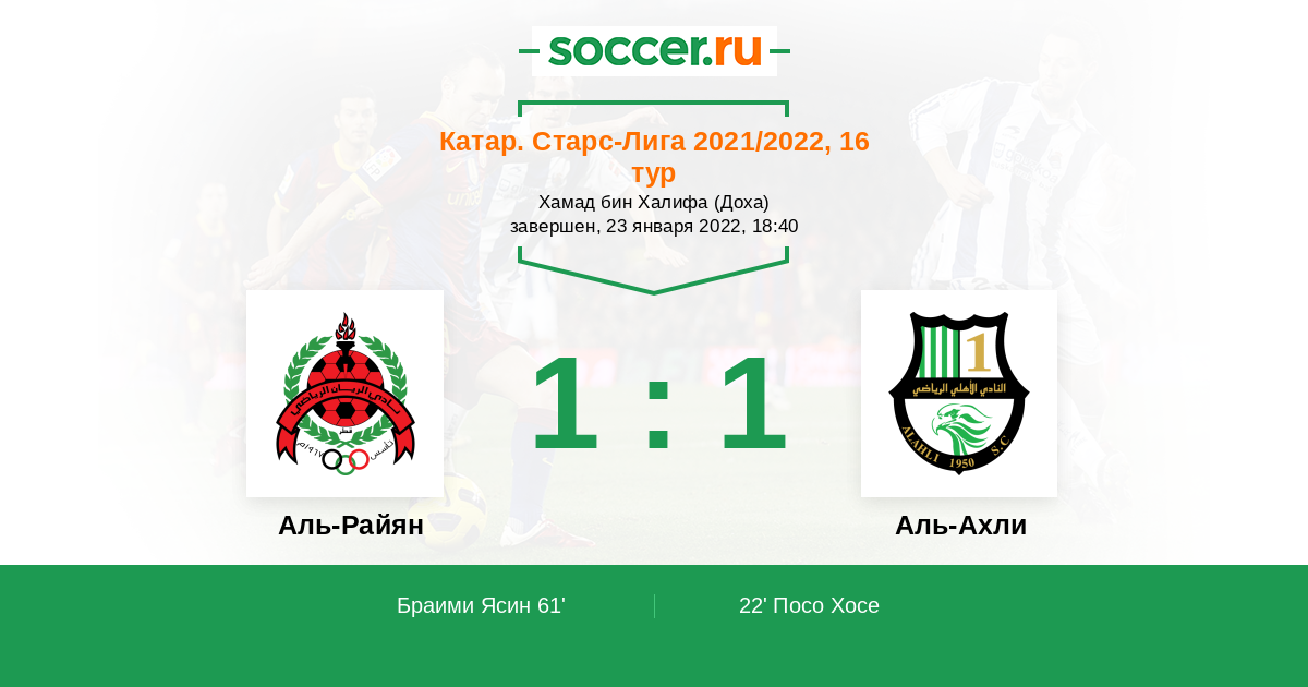 22' (0:1) Посо Хосе (6) (Аль Харази Абдулрахман (16))